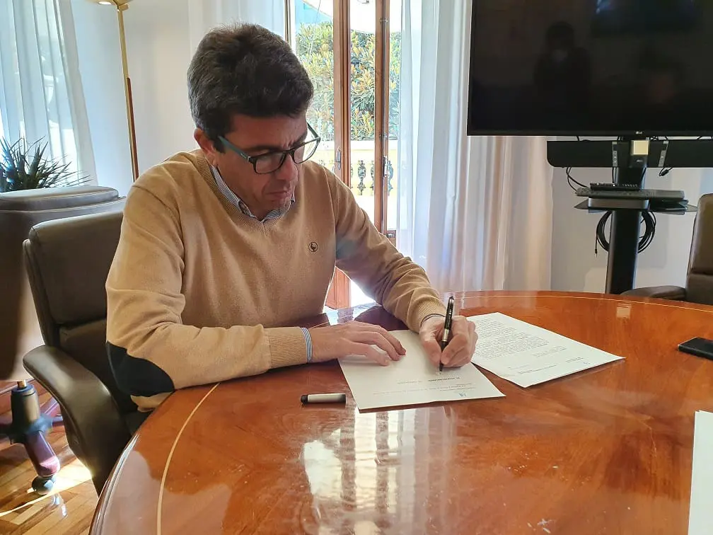 El presidente de la Diputación, Carlos Mazón, ha firmado esta mañana el decreto de adhesión al Plan Resistir que, tal y como ha señalado, debe ir acompañado de exenciones fiscales a autónomos y empresas.