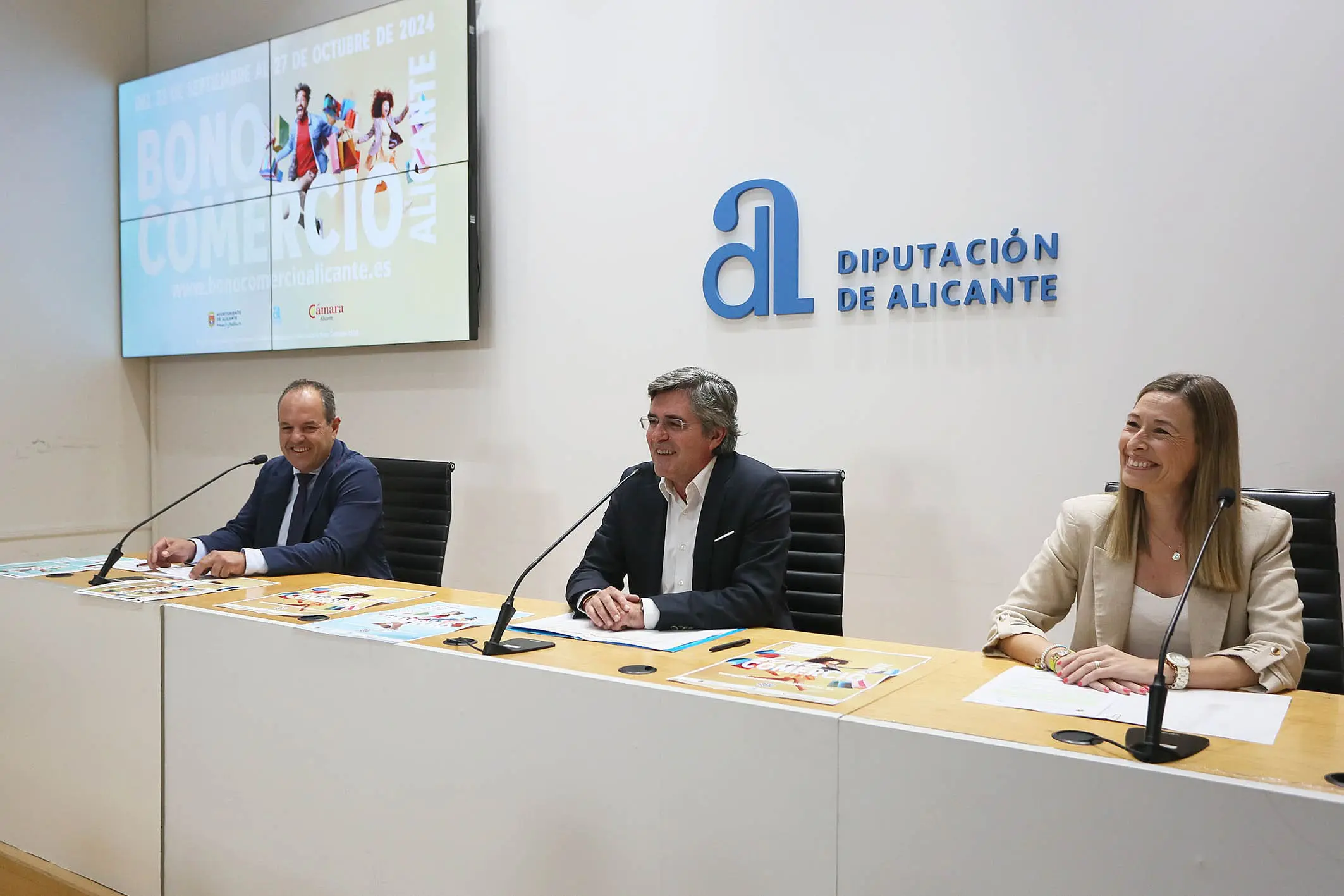 La concejala de Comercio, Consumo y Mercados, Lidia López, junto con el diputado de Desarrollo Económico, Carlos Pastor, y el presidente de la Cámara de Comercio, Carlos Baño, han presentado esta edición que arrancará el lunes 23 de septiembre con la venta presencial del Bono senior, y el 26, 27 y 30 de septiembre y 1 y 2 de octubre con el Bono general on line en www.bonocomercioalicante.es , que se podrán gastar hasta el 27 de octubre.