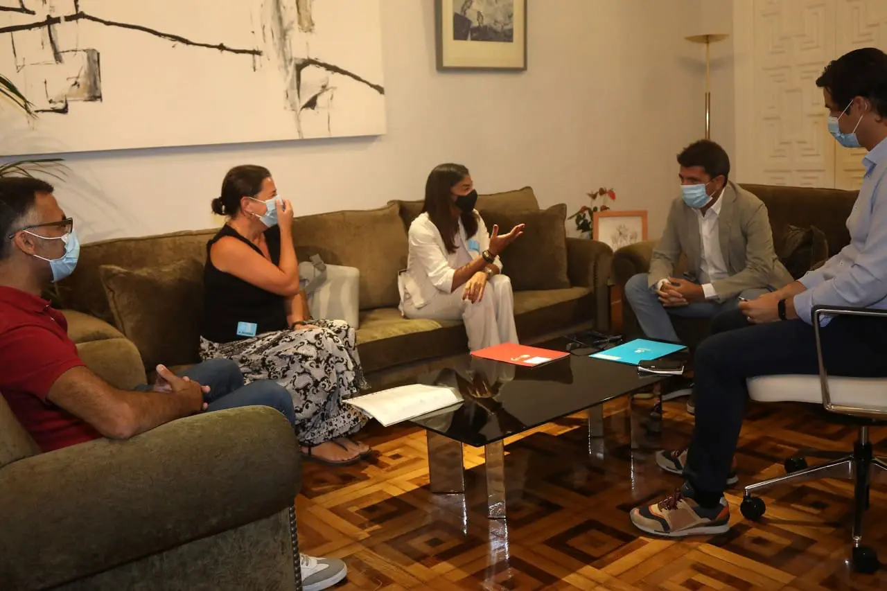 Mazón, acompañado por el diputado de Presidencia y Economía, Eduardo Dolón, ha abordado esta cuestión con la secretaria general de UGT L’Alacantí-Les Marines, Yaissel Sánchez, quien ha acudido al Palacio Provincial junto a los miembros de la entidad Rosa Benítez y Pedro Santiago.
