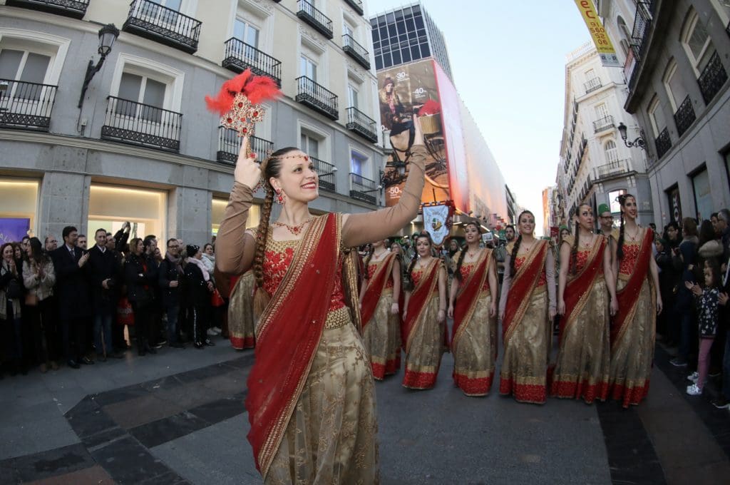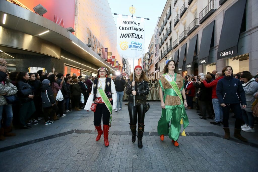 Ayer por la tarde la provincia de Alicante tomó las principales arterias de la ciudad de Madrid para mostrar al mundo la singularidad, tradición y belleza de sus fiestas populares más representativas. Este año el Gran Desfile Provincial batió récord de participación con más de 1.500 personas de 40 asociaciones procedentes de cerca de una treintena de municipios.