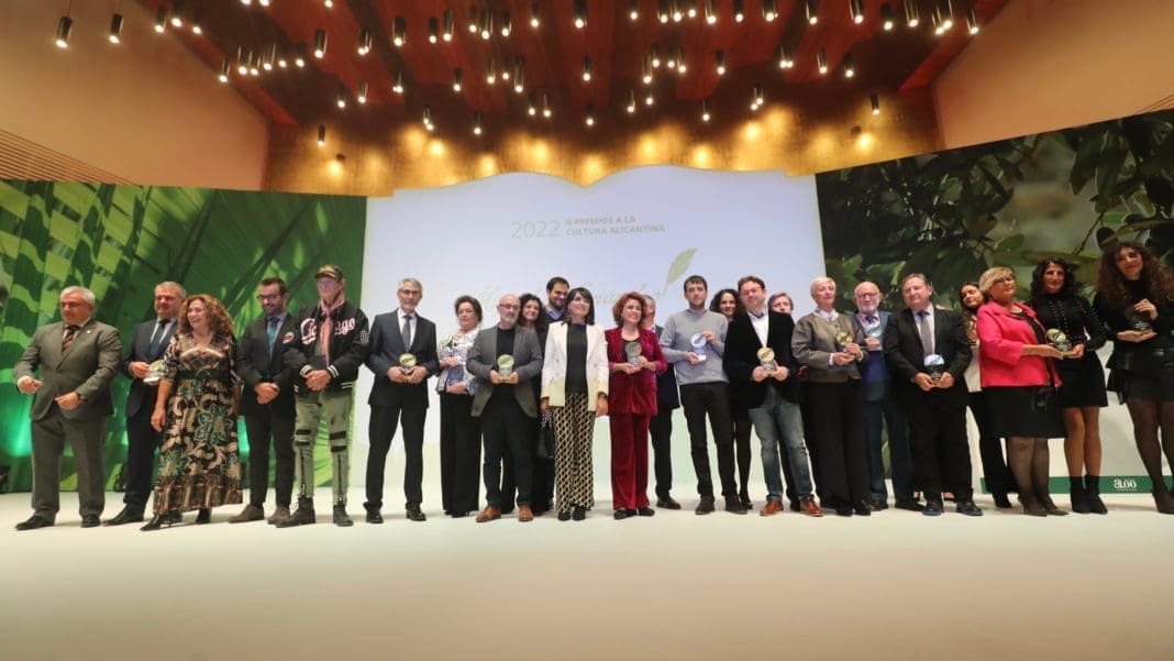 Como reconocimiento a la trayectoria profesional se ha concedido galardones al escritor José Luis Ferris (Libro y literatura), al Teatro Principal de Alicante (Artes escénicas), al ilustrador e historietista Miguel Calatayud (Artes plásticas y visuales), al operador de cámara Luis Colombo (Audiovisual) y al guitarrista Ignacio Rodes (Música). En la categoría de nuevos creadores y emprendedores se ha seleccionado al catedrático de la UA impulsor de la Biblioteca de los libros felices, Manuel Desantes (Libro y literatura), a la responsable de las unidades territoriales del Institut Valencià de Cultura en la provincia, Alicia Garijo (Artes escénicas), a los galeristas Michael Jenkins y Javier Romero (Artes plásticas y visuales), a la artista Elena López Riera (Audiovisual) y al musicólogo de la UA Javier Romero Naranjo (Música).