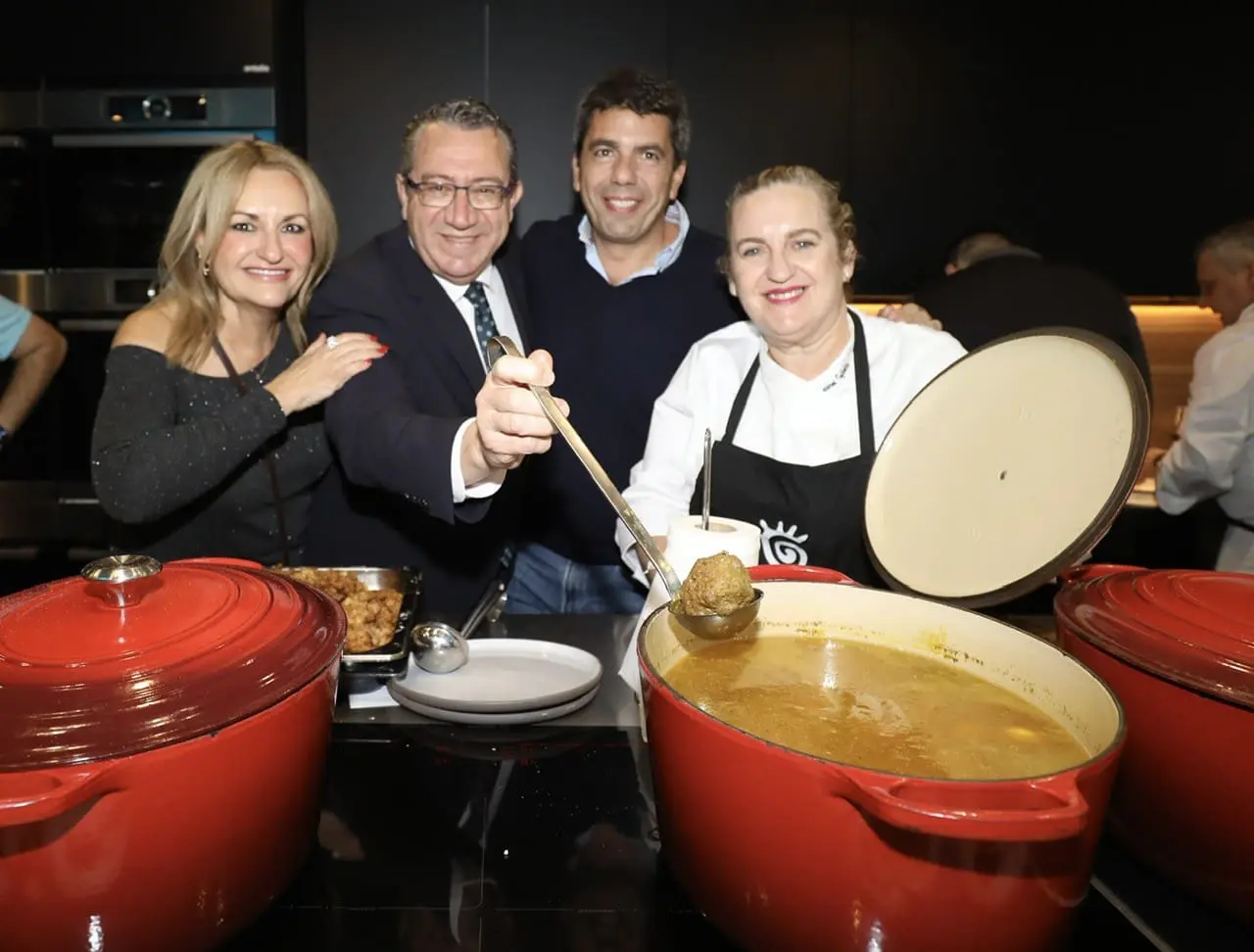 El president de la Generalitat Valenciana, Carlos Mazón, no ha querido perderse este evento en el que se han servido aperitivos típicamente alicantinos y diversos platos elaborados por el Restaurante Xiri (Monóvar), Los Infantes (Almoradí), El Hogar del Pescador (La Vila Joiosa) y El Caldero (Alicante). La degustación ha culminado con postres como el panettone de Juanfran Asencio, chocolates Clavileño, turrones Garrigós y también de la D.O. Turrón de Jijona y Alicante.
