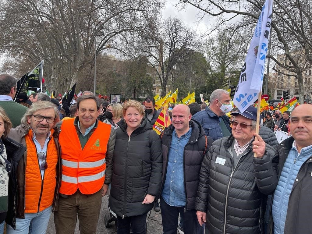 Los diputados del equipo de gobierno de la Diputación de Alicante Ana Serna, Sebastián Cañadas, Javier Sendra y Alejandro Morant han participado esta mañana en Madrid en la manifestación convocada en defensa del mundo rural en la que los representantes alicantinos han vuelto a reclamar el agua de los trasvases y una rebaja en el precio del agua desalada.