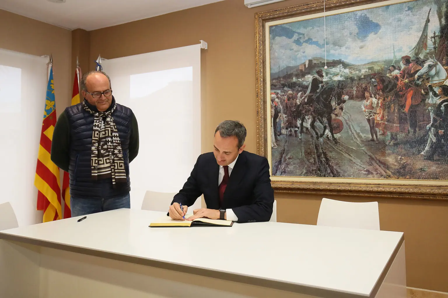 El presidente de la Diputación de Alicante también visitó ayer por la mañana Benillup, acompañado por el alcalde, Enrique Coderch, donde ha tenido lugar la firma del acta de recepción de las obras de adecuación de la piscina municipal, en la que la institución provincial ha invertido 100.000 euros, sufragando el 95% del coste de la misma.
