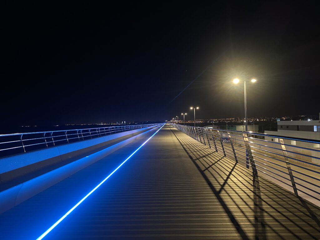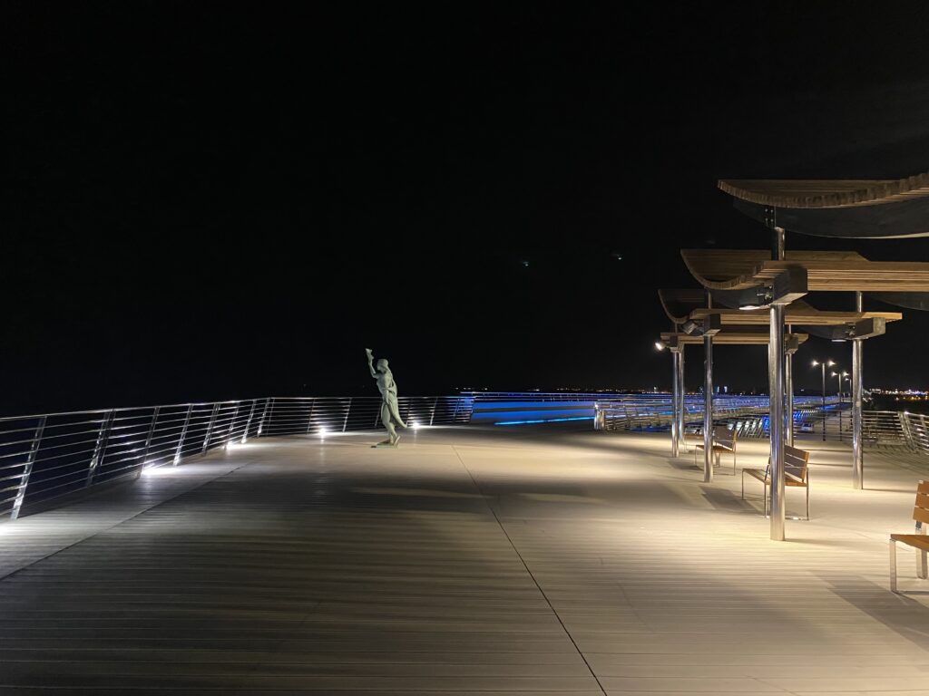 Otro de los elementos singulares es el nuevo sistema de iluminación RGB, que dota al Dique de una imagen nocturna propia y lo convierte en un nuevo punto de referencia visual del litoral torrevejense. A ello se suma la mejora de las zonas de acceso y transición, que ahora ofrecen espacios más amplios y abiertos desde los que contemplar el mar y el entorno costero.