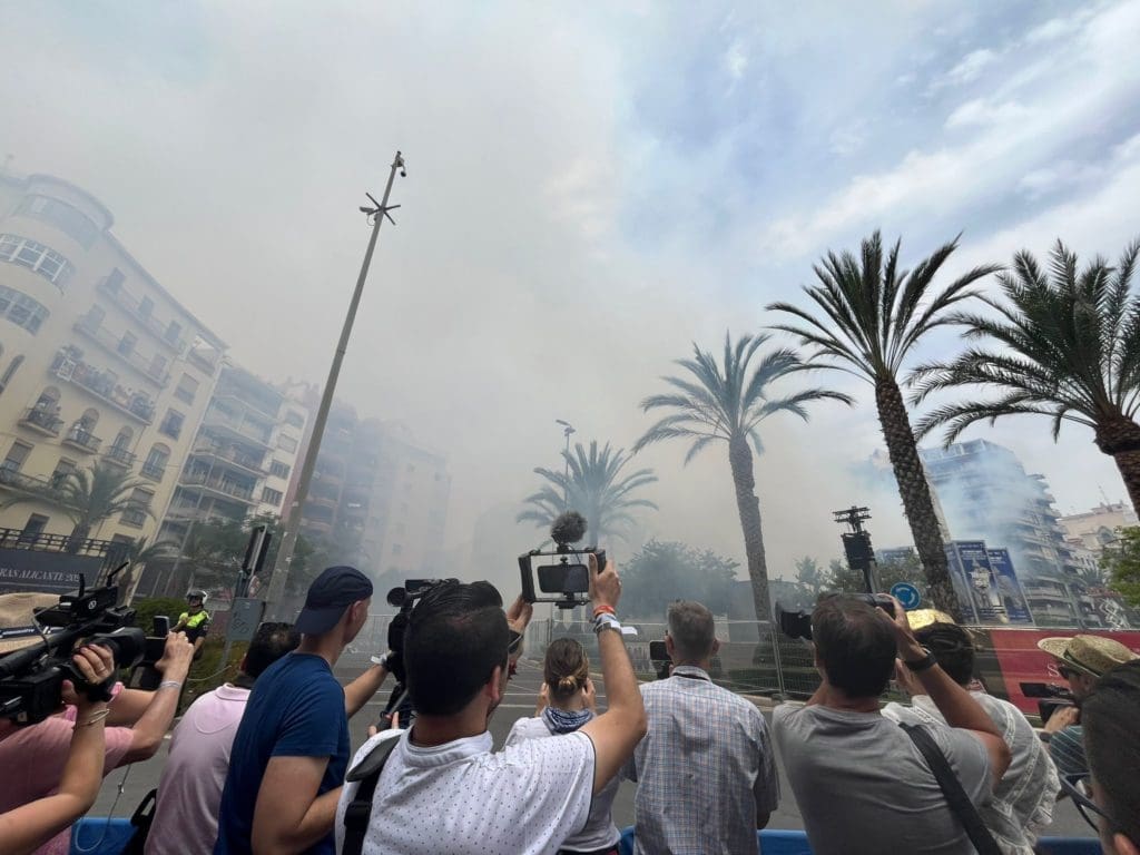 El alcalde Luis Barcala, al término del disparo, ha explicado que «las Hogueras se viven y sienten en las calles y plazas de Alicante y las mascletàs constituyen uno de los más claros ejemplos». Han sido dos de las damas adultas e infantiles de las Belleses del Foc, Alba Muñoz y Martina Lloret, quienes han anunciado el comienzo de una exhibición pirotécnica que ha contado con la presencia de Toni Pérez, presidente de la Diputación Provincial.