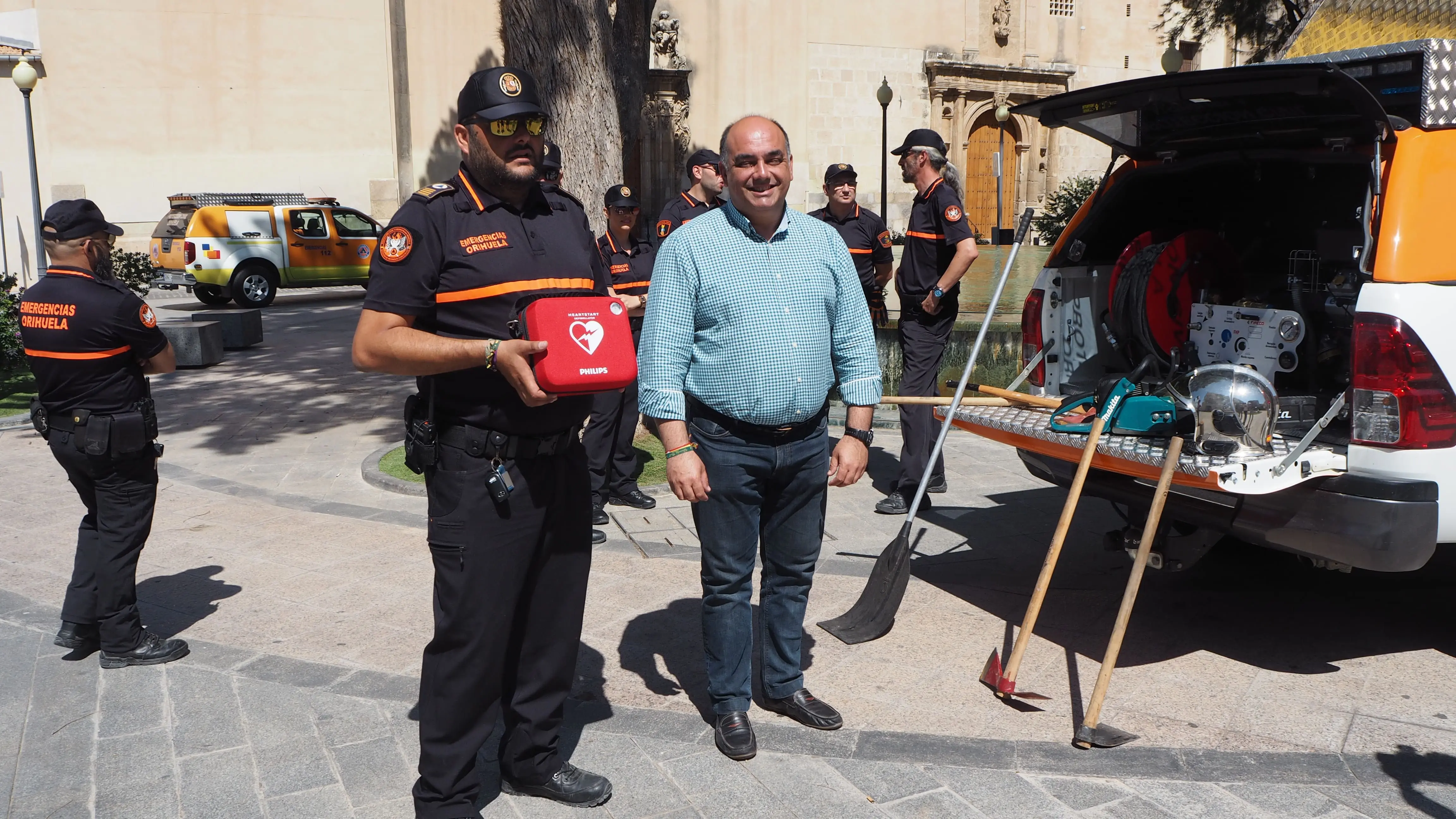 El alcalde de Orihuela, Emilio Bascuaña, y el concejal de Emergencias, Víctor Valverde, presentaron este martes el dispositivo preventivo de extinción de incendios, que se establece de manera anual con la llegada del verano, destinado a la prevención de incendios forestales.