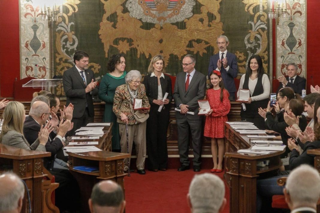 El Ayuntamiento de Alicante ha concedido este viernes en el Salón de Plenos la Medalla de la Ciudad al pueblo alicantino por su “modélico comportamiento” durante la pandemia del covid-19, a la Policía Local en su 175 aniversario, al Doctor Francisco Javier Balmis por su labor para combatir la viruela y al Instituto de Enseñanza Secundaria (IES) Jorge Juan por ser uno de los centros más antiguos de España prestando educación pública a lo largo de 177 años.