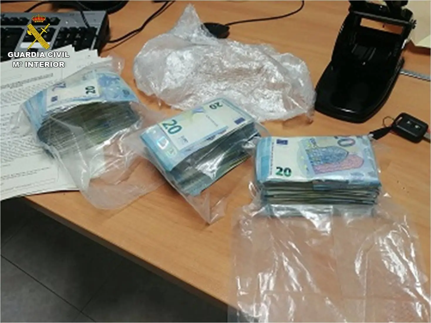Pero los supuestos delitos no acabaron tras conocer su identidad. Durante la inspección del vehículo hallaron 25.820 euros en billetes de 20 envueltos en tres paquetes de film transparente, ocultos en doble fondo detrás de la parte acolchada de la carrocería del coche, que se desprendió al ser manipulada por uno de los agentes.