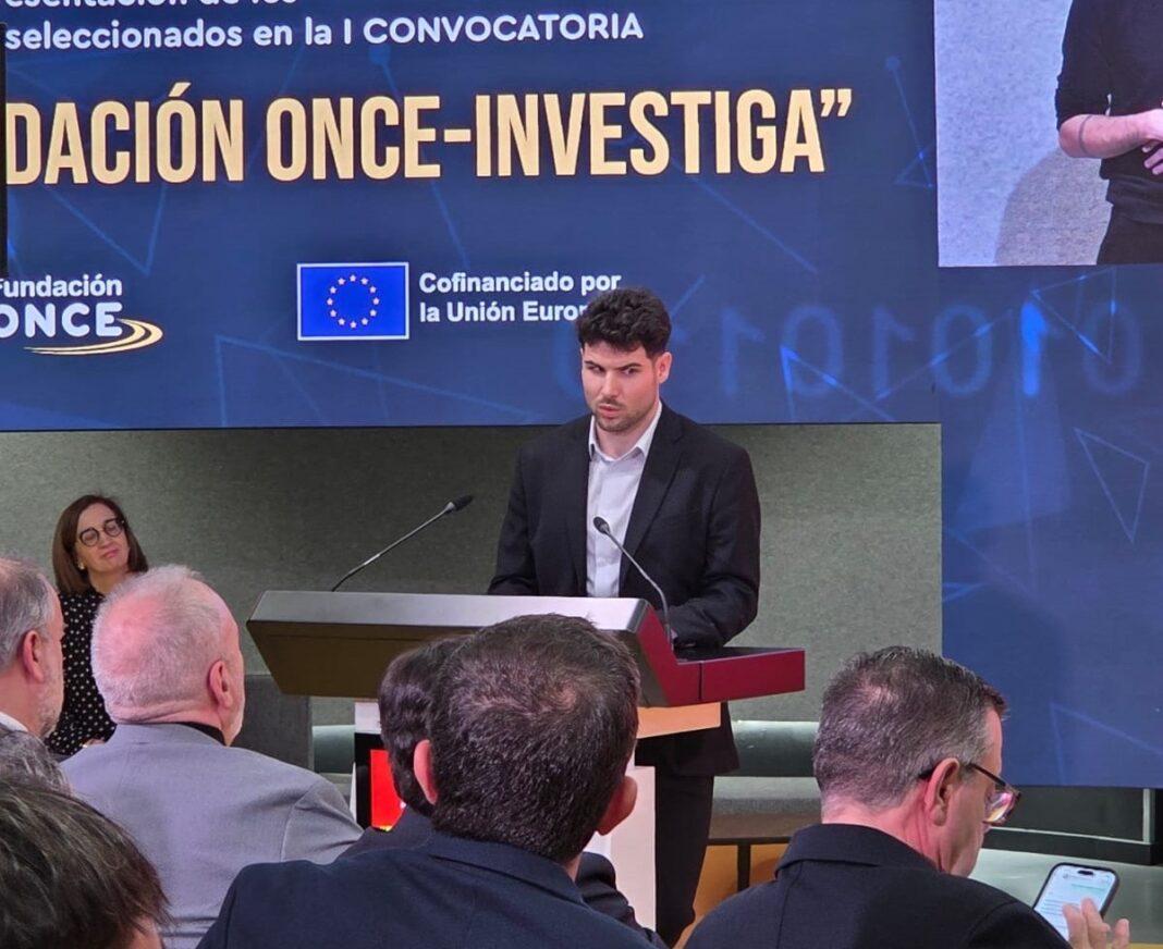 Arturo Martínez, estudiante de doctorado de la Universidad de Alicante (UA), ha recibido una de las becas del programa INVESTIGA de la Fundación ONCE, una iniciativa dirigida a promover la carrera académica e investigadora del alumnado universitario con discapacidad. La entrega se ha celebrado este miércoles 18 en Madrid, en el Hub de Fundación ONCE.