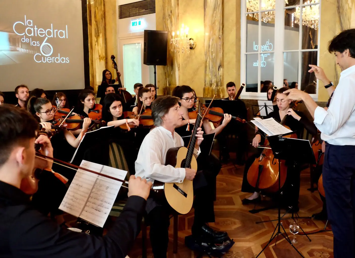 El pase en primicia de esta cinta, ‘La catedral de las 6 cuerdas’, se ha celebrado en el histórico Hotel Imperial de la ciudad austríaca con la presencia del ministro consejero de la Embajada de España en Vienam, así como del director de la Orquesta de Jóvenes de la Provincia de Alicante, Francisco Maestre, y del guitarrista Ignacio Rodes quienes, junto a unos cuarenta músicos de la joven formación, han ofrecido una interpretación de unos 15 minutos de duración.