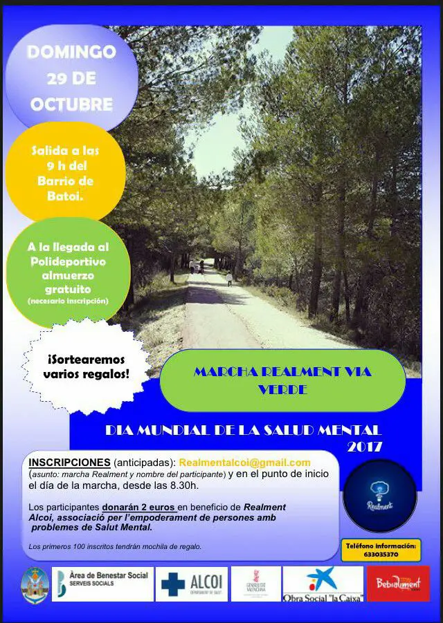 «Realment Alcoi», la asociación por el empoderamiento de las personas con problemas de salud mental, ha organizado una marcha por la Vía Verde para celebrar el Día Mundial de la Salud Mental, el domingo 29 de octubre.