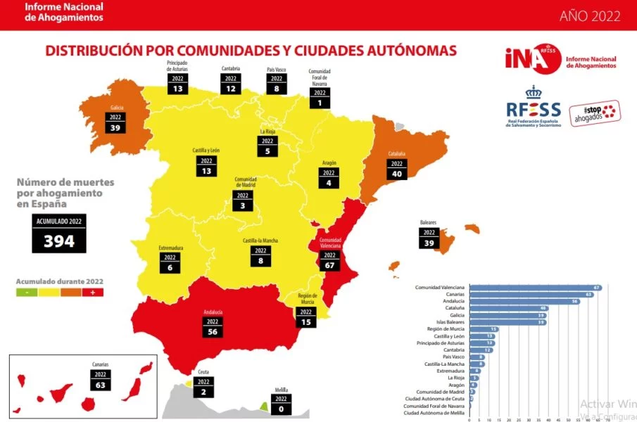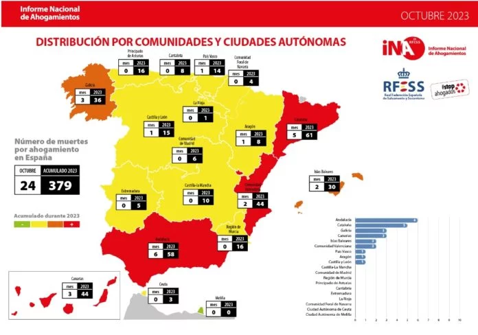 La Real Federación Española de Salvamento y Socorrismo informa a través de su web de los datos del INA, mediante el Sistema Integrado de Gestión de Datos de Incidencias en el Medio Acuático (SIFA), y desarrolla a lo largo de todo el año una campaña de prevención de ahogamientos en el medio acuático, #StopAhogados, sin ningún tipo de apoyo público ni privado.16.11.2023.