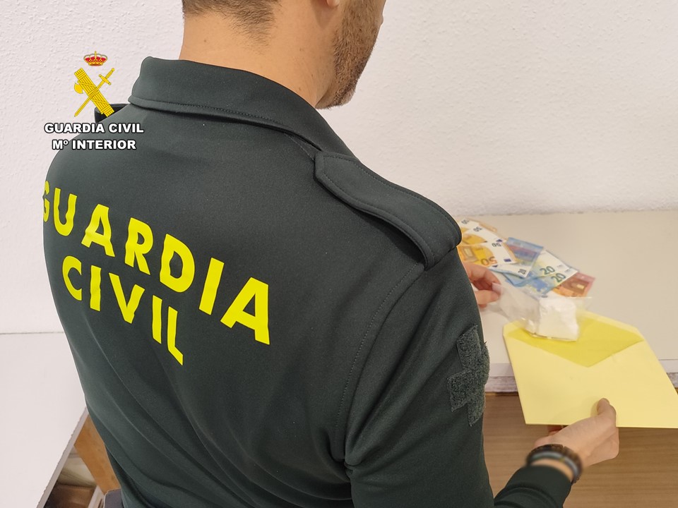 La Guardia Civil ha detenido en Jijona a dos hombres de 39 y 57 años como presuntos autores de un delito contra la salud pública por tráfico de drogas, en el marco de un dispositivo operativo en vía pública. En la actuación, los agentes han intervenido una roca de sustancia blanca de 100 gramos, supuestamente cocaína, además de 321,60 euros en efectivo y el vehículo que utilizaban.