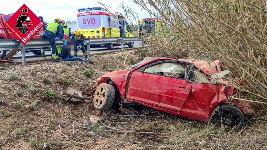 Un hombre y una mujer han resultado heridos tras salirse con su coche de la vía en la A-31, en término de Elda (Alicante), según han informado el Centro de Información y Coordinación de Urgencias (CICU) y el Consorcio Provincial de Bomberos de Alicante.
