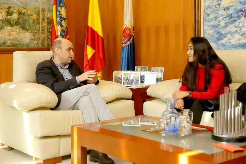 El alcalde de Alicante, Gabriel Echávarri, recibe a la colegiada Nicole Ramos para mostrarle su total apoyo