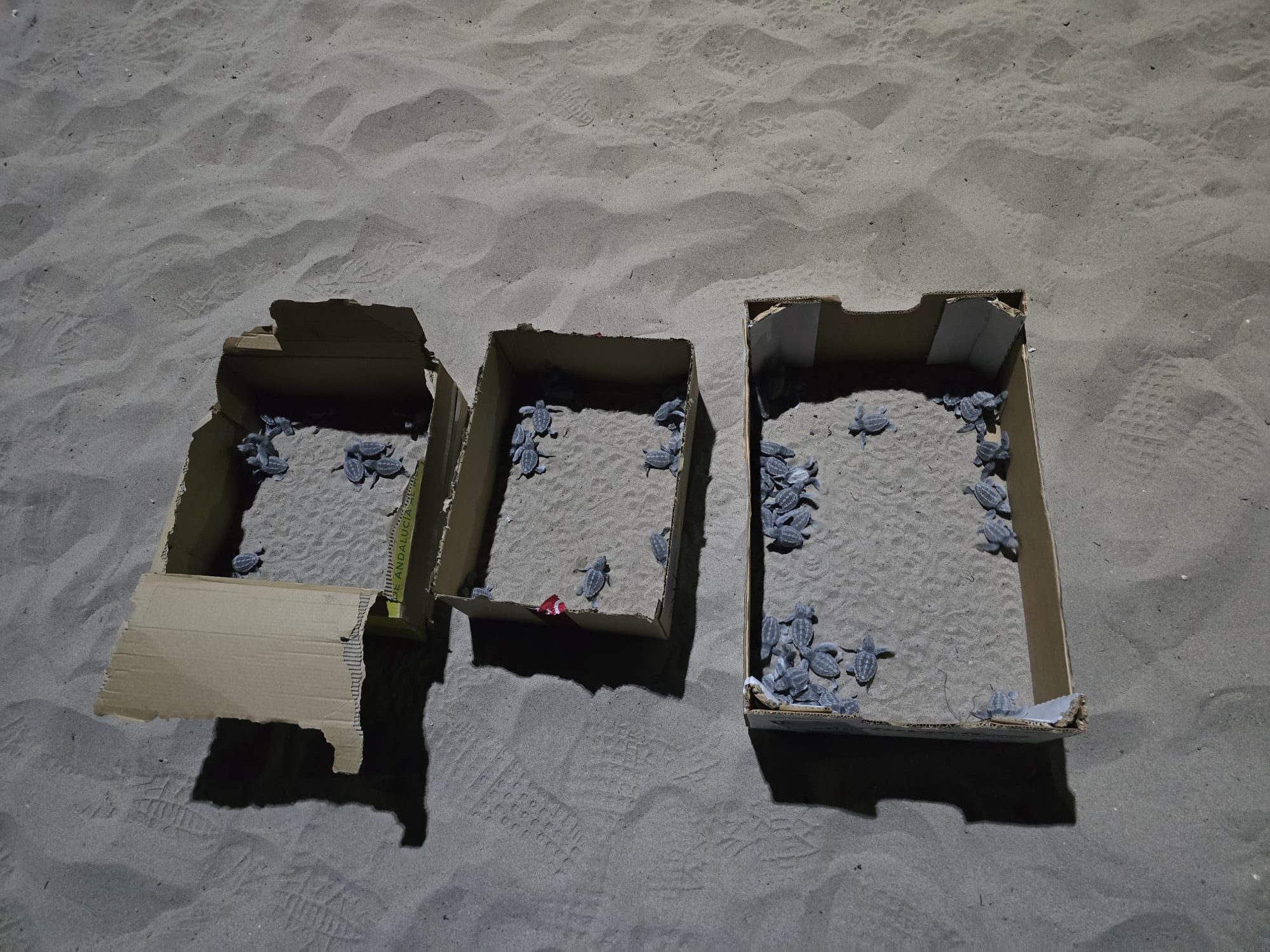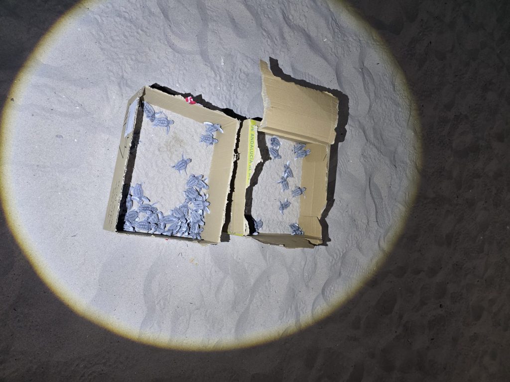 La nidada la componían 98 huevos, 92 de ellos eclosionados, lo que significa que 20 ejemplares ya habían alcanzado el mar. Los particulares que encontraron inicialmente el nido liberaron otras cinco crías en el agua antes de la llegada del dispositivo técnico. El balance se completa con cuatro huevos con desarrollo embrionario (tres en fase tardía y uno en fase temprana) y dos huevos sin polo, es decir, sin posibilidades de desarrollo.