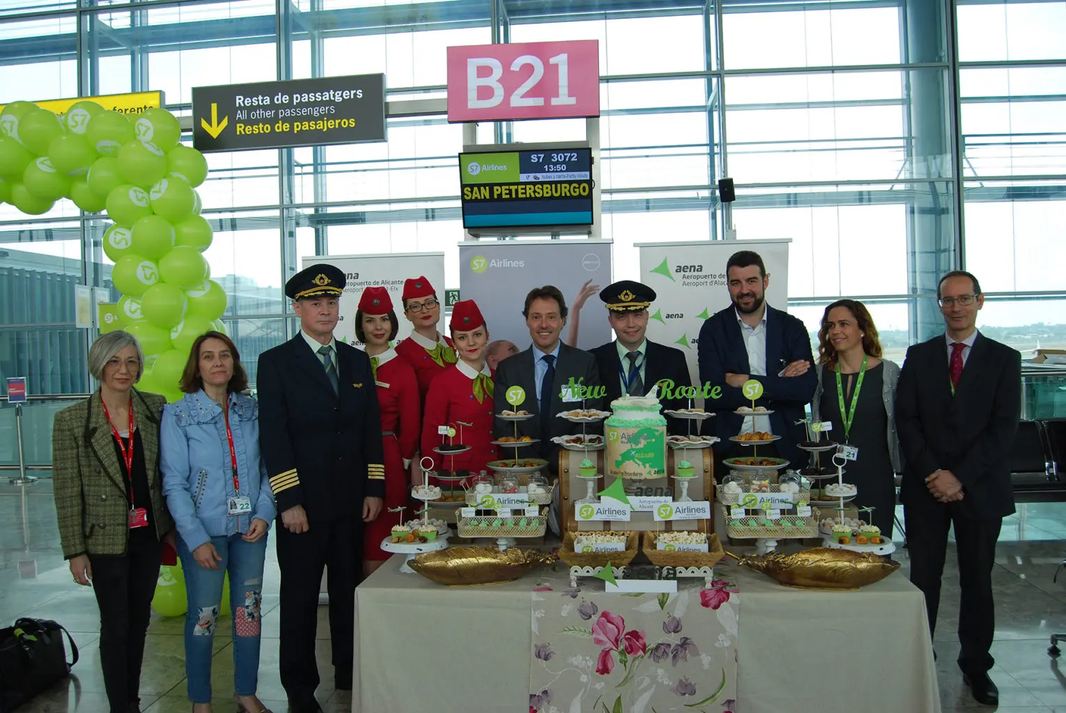 Además, el Aeropuerto de Alicante-Elche preparó una tarta conmemorativa de la ruta que han cortado representantes de la aerolínea, del Patronato de Turismo Costa Blanca y del Aeropuerto. Posteriormente, el pastel se repartió entre los pasajeros de salida que esperaban su vuelo en la zona de embarque. La compañía S7 Airlines también oferta vuelos con Moscú-Domodedovo con frecuencia diaria desde la terminal alicantina.