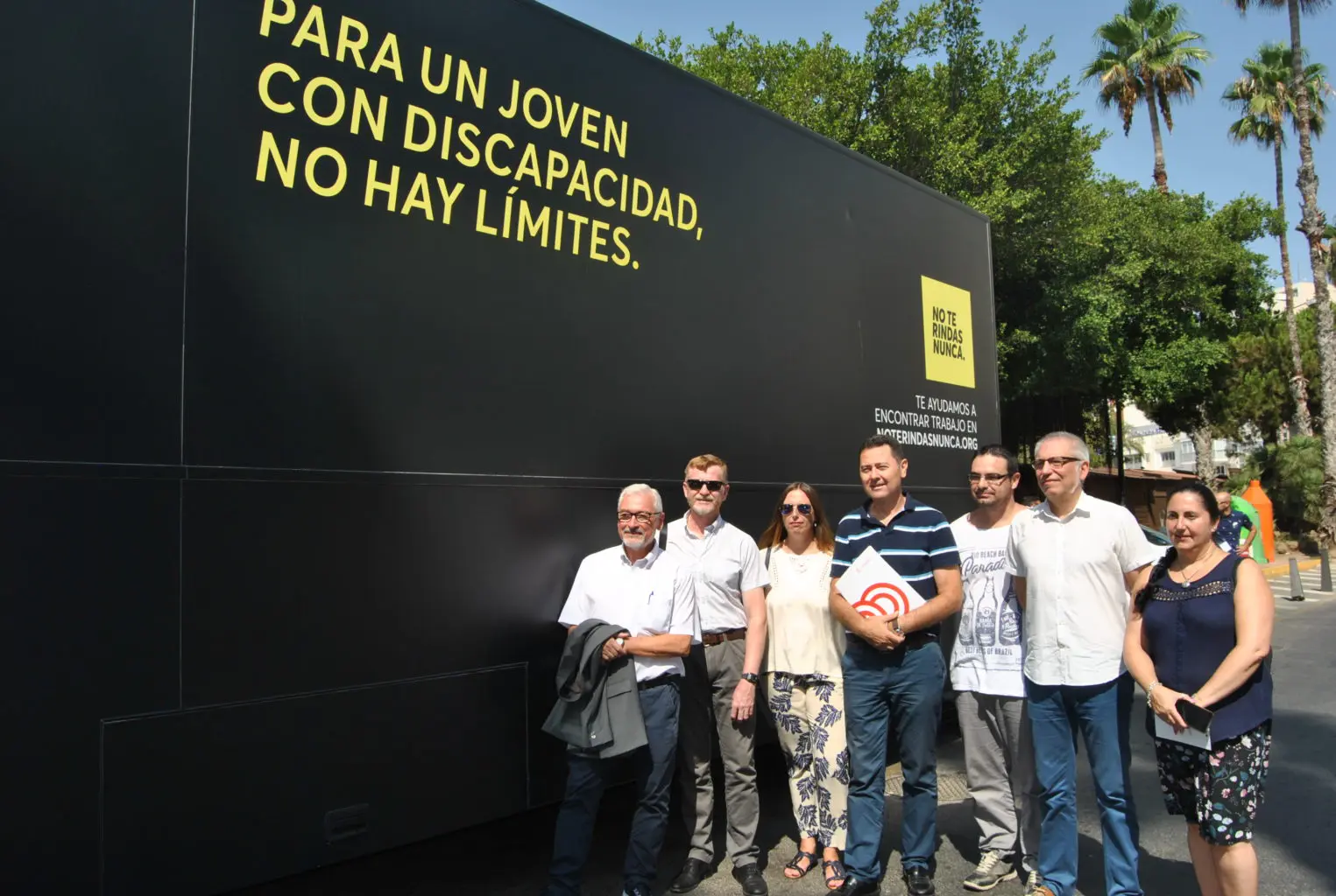 El alcalde de Torrevieja, José Manuel Dolón, acompañado de los ediles de Empleo, Víctor Ferrández; Bienestar Social, Fabiana Ibarra; y Educación, José Hurtado, visitaron el camión (roadshow). “No te rindas nunca” que Inserta Empleo, la entidad para la formación y el empleo de Fundación ONCE, ha traído a Torrevieja con el lema “Esta oportunidad no pasa todos los días” y que realiza talleres en los que se trabaja la inclusión laboral de jóvenes con discapacidad. Las personas con al menos un grado de discapacidad del 33%, podían visitar la unidad móvil en el Paseo de la Libertad los días 3 y 4 de agosto en horario de 10 a 14h y de 16 a 20h, el sábado en horario de mañana.