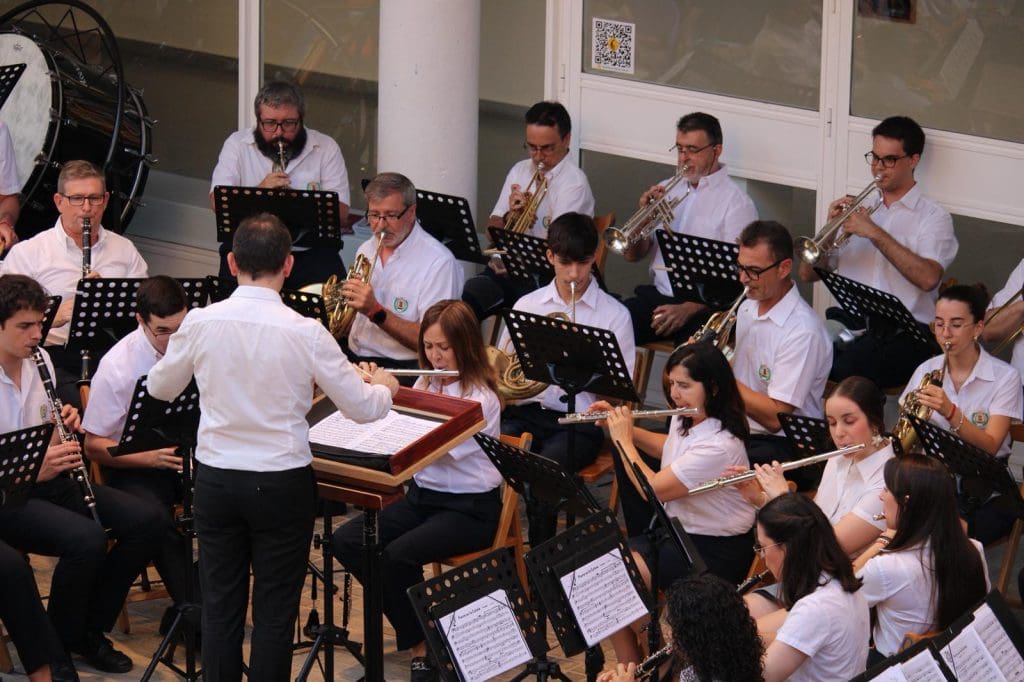 Bajo la dirección de Luis Seguí, la banda dedicó el concierto a la música de pasodoble, tocando piezas tan conocidas como “Campanera”, “Camino de rosas”, “Churumbelerías” o “Suspiros de España”, para recibir el verano en un inigualable entorno.