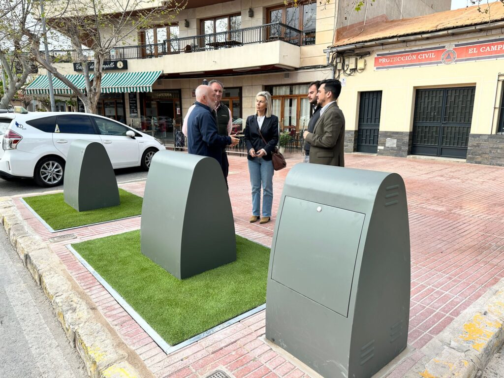 Los nuevos contenedores incorporan un sistema de autocierre a presión, de manera que, una vez depositada la bolsa, el mecanismo se cierra de forma suave y sin generar ruido. Esa mejora fue explicada esta semana durante una visita en la que participaron el edil Rafa Galvañ, la primera teniente de alcalde, Lourdes Llopis, y el concejal de Infraestructura Pública, Cristian Palomares, junto al delegado de FCC en el municipio, Alejandro Calbo.