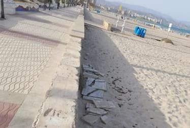 Al margen del deterioro propio del paso del tiempo, ese murete ha sido objeto en los dos últimos años de varios actos vandálicos. Estos han causado daños de consideración al destrozar a martillazos placas de piedra que fueron arrojadas a la arena.
