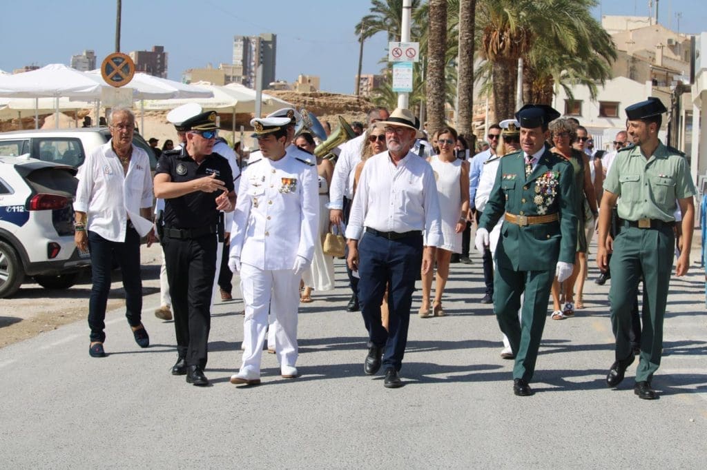 Pocas oportunidades tiene un municipio de reunir en un mismo acto a autoridades de la relevancia de José Hernández Mosquera (coronel jefe de la Comandancia de la Guardia Civil de Alicante), Jorge Ángel Jiménez Ayala (teniente de navío, comandante del patrullero Formentor y en este acto representante de la Armada Española), y José Antonio Cano (comisario jefe de la Policía Local de El Campello), además de otros muchos mandos militares y de la Guardia Civil y Policía Local, así como integrantes de la marinería del patrullero.