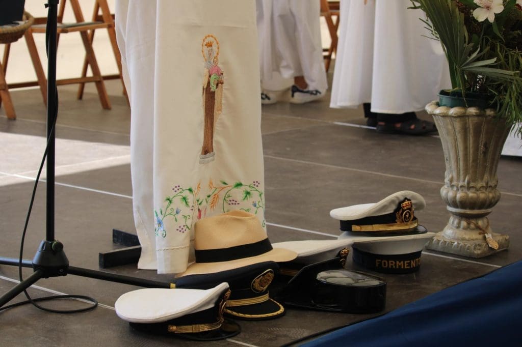 Después de celebrada la Misa, se ha procedido a la bendición de los escapularios confeccionados para conmemorar el centenario de las fiestas, y finalmente, también al son de la música de la banda La Nova, la imagen de la Virgen del Carmen se ha trasladado a la embarcación sobre la que esta tarde viajará en su recorrido por la costa durante la procesión marinera, uno de los principales actos de los festejos. Este año se trata del barco “José Miguel y Joana”, capitaneado por Fernando Pérez.