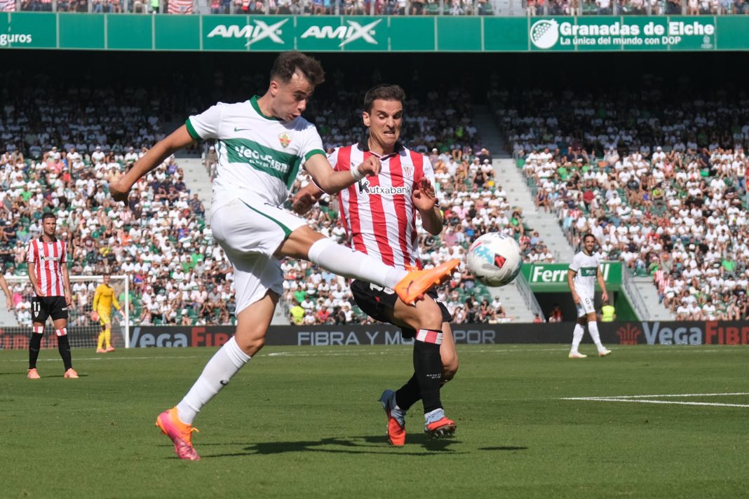 El Elche fue dueño del balón y la iniciativa, aunque le costó superar el medio campo físico del Athletic Club hasta que Rafa Mir ofreció una salida en los balones largos.