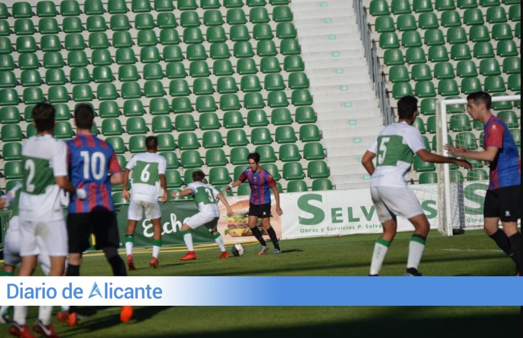 El encuentro comenzó, y cuando los de Mullor quisieron coger el ritmo, el Elche Ilicitano ya había comenzado a anotar su primer gol en el minuto siete bajo las botas de Adrián Molina.