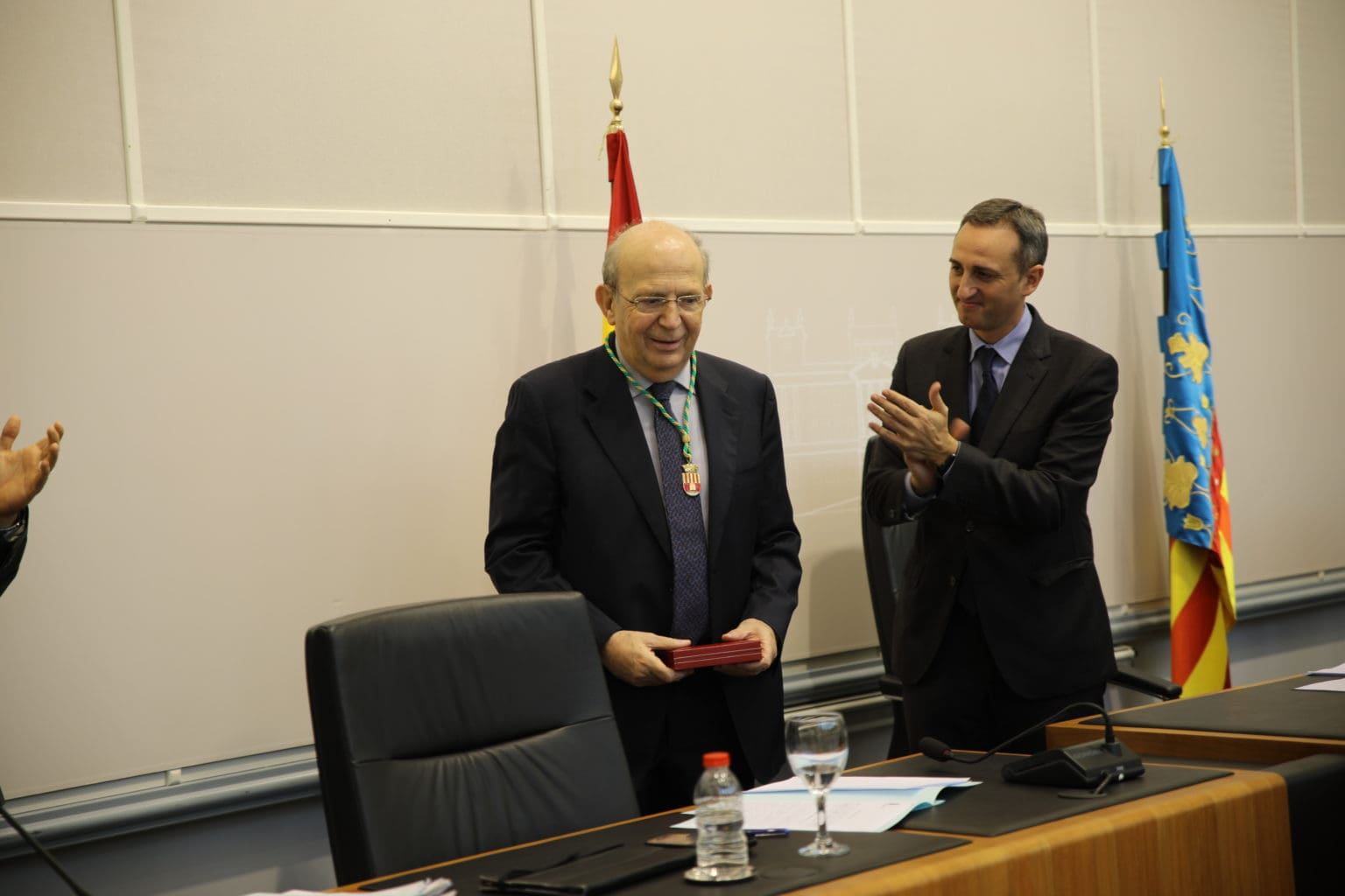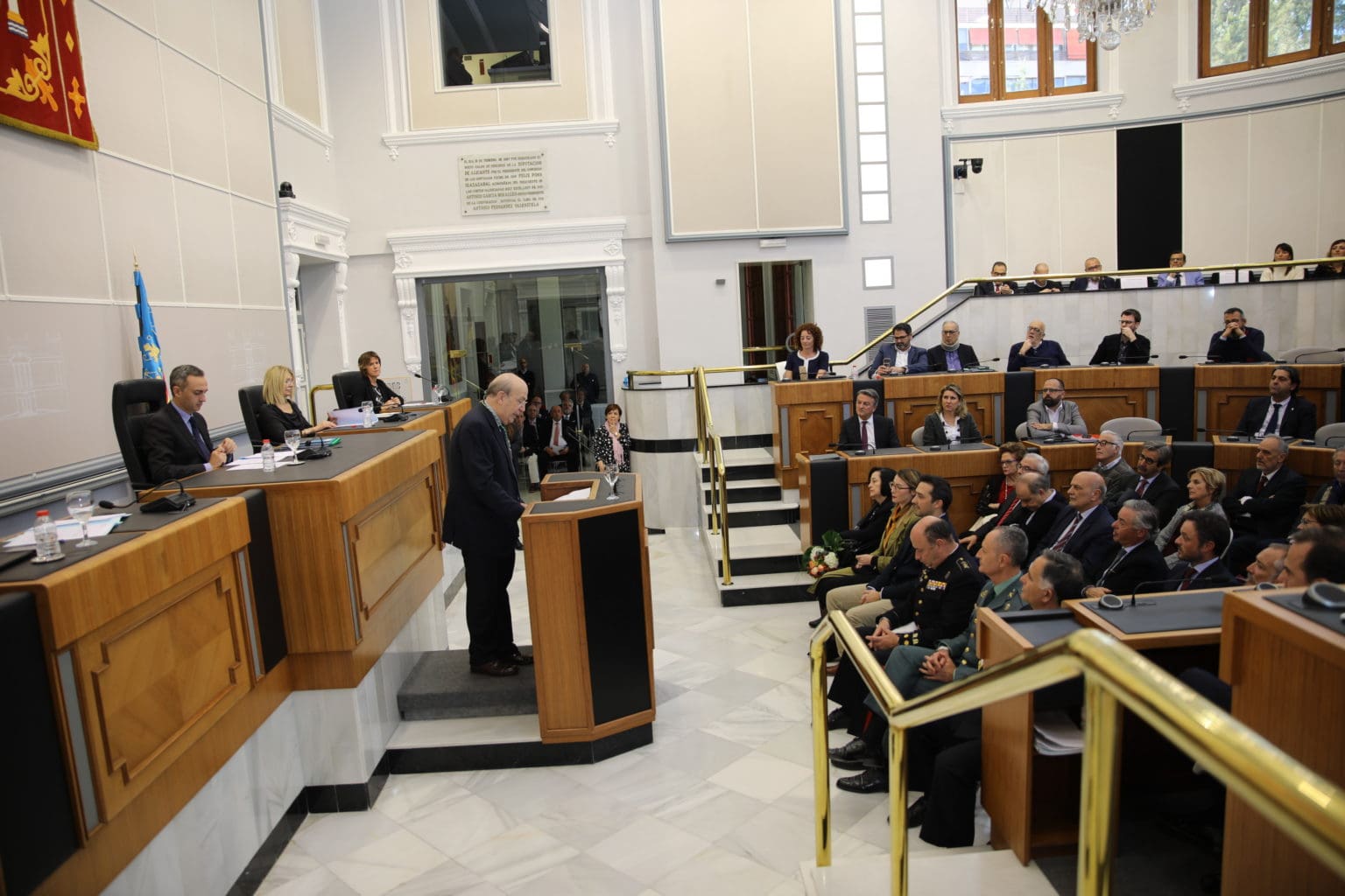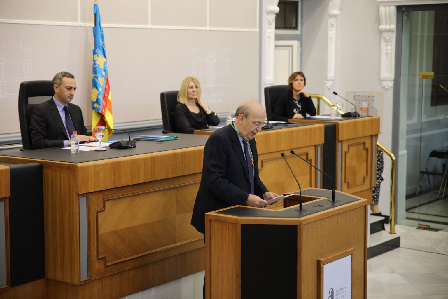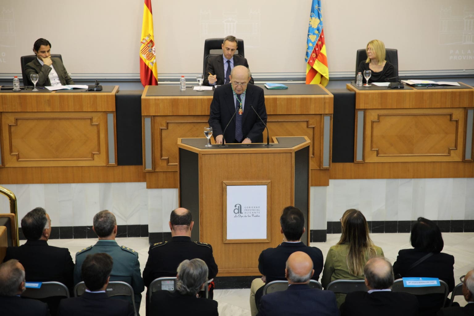 La corporación provincial ha aprobado, en un pleno extraordinario y por unanimidad, la entrega de la Medalla de Oro Provincial con la que se ha querido reconocer la brillante trayectoria profesional y el espíritu de servicio de este jurista en sus casi 40 años de trabajo en la Diputación alicantina. Martínez Dueñas, quien en 2015 fue nombrado Alicantino de Adopción, «ha desarrollado una labor fundamental de servicio a la sociedad y de forma muy especial a la Diputación y a los ayuntamientos de la provincia a los que ha servido de guía en materia de asesoramiento jurídico», ha destacado Sánchez.