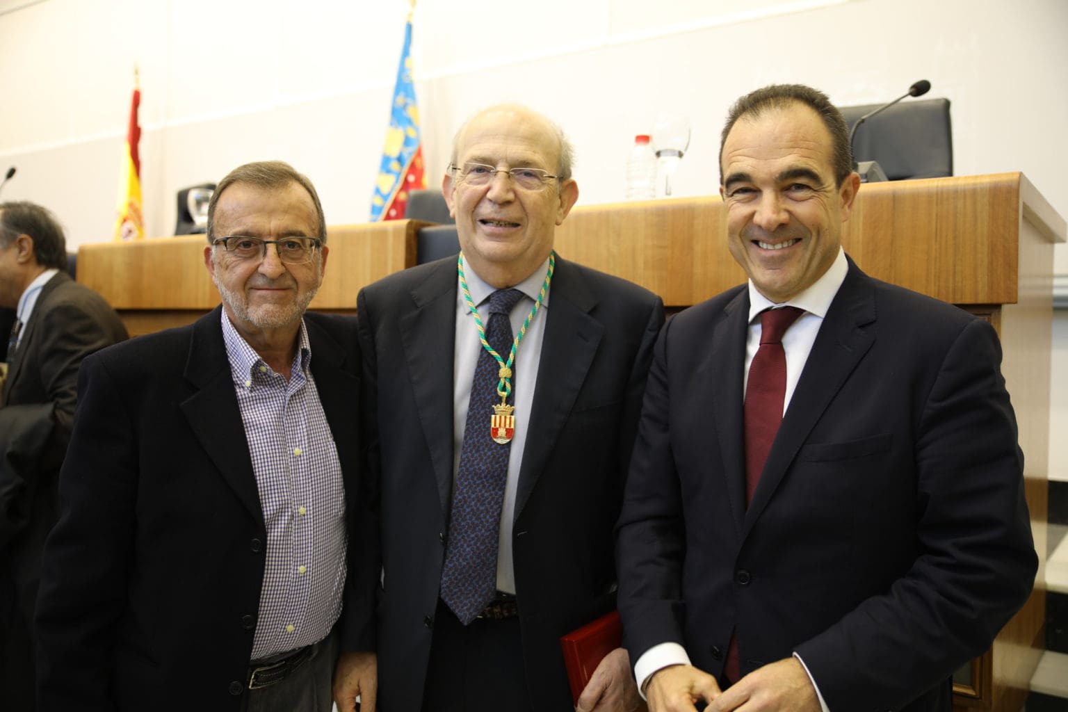 El presidente de la Diputación de Alicante, César Sánchez, ha hecho entrega esta mañana de la Medalla de Oro de la Provincia a Rafael Martínez Dueñas, director, hasta el pasado sábado, del Área de Servicios Jurídicos de la institución provincial.