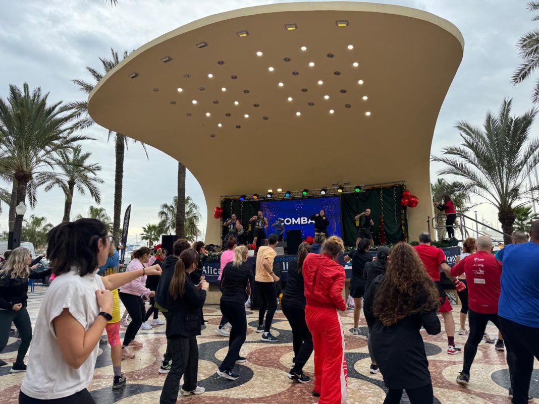 La sesión matinal del Navidad Fitness de este domingo 4 de enero ha desafiado a la previsión de lluvias y ha reunido a cerca de 200 practicantes frente al auditorio de la Concha de la Explanada. La segunda parte de este programa deportivo, que por cuarto año consecutivo figura en el programa oficial de la Navidad alicantina, se desarrollará en la tarde del martes 6 de enero. Será la denominada CaminaFit que discurrirá sobre un recorrido urbano de cuatro kilómetros, por las principales calles del centro de Alicante.