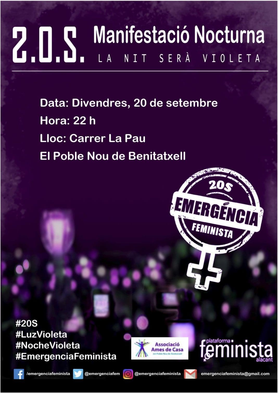 La manifestación dará comienzo en la calle La Pau las 22:00 horas y continuará hasta la plaza del Ayuntamiento, donde se leerá un manifiesto.