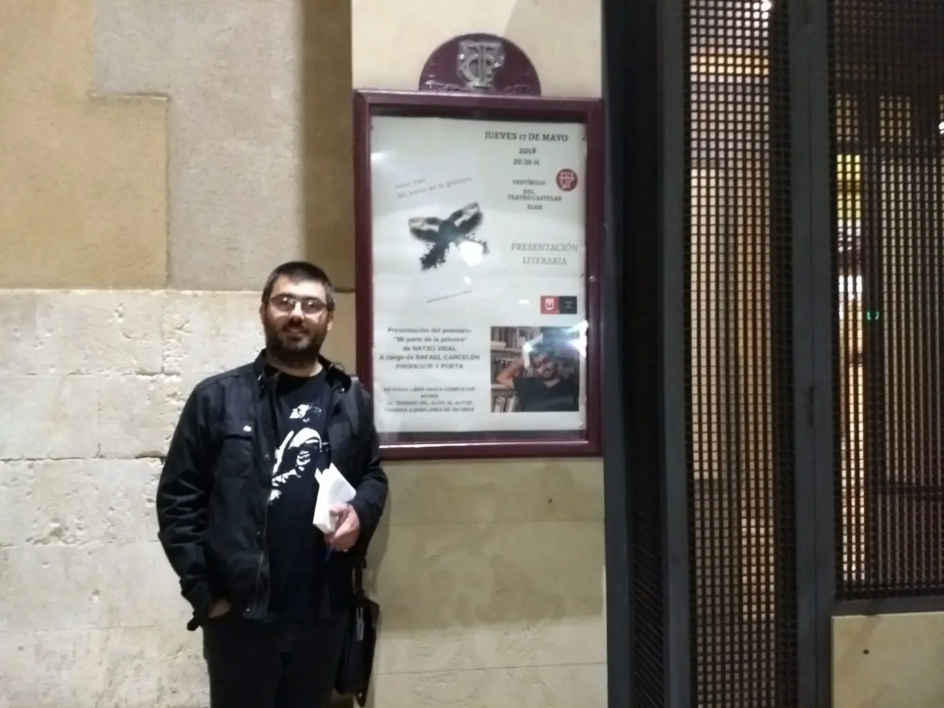 El libro que va a presentar Vidal es el quinto, con unos cincuenta poemas divididos en dos partes, que como destaca el autor, versa sobre el amor, las relaciones personales y la esperanza por cambiar las cosas. Con la presentación de un libro algo más crudo, mas descarnado e incluso el poeta lo describe como menos poético, es la quinta que realiza en este mes, siendo Elda, Murcia, Cartagena y Madrid las ciudades que han podido saborear los versos que se fundían en el aire de los asistentes. “Mi parte de la pólvora” se publicó a principios de abril en la editorial madrileña Huerga y Fierro que ya le publicó anteriormente su segundo poemario. Natxo Vidal (Monóvar, 1978) es autor de los poemarios “Atrás no es ningún sitio” del 2016, “Sal en los ojos” del 2012 “La niña que jugaba a la pelota con os dinosaurios”, del 2013 y en 2015 salió a la luz “Ícaros desorientados”. Además de lidiar con políticos y componer versos, también es profesor de música en la especialidad de trombón, es por ello, que el músico que le acompaña en la presentación de Les Clarisses, es uno de sus amigos, fruto de los nueve años de estudios en el conservatorio de Elche. Vidal es alcalde de su población natal desde el 2014, pero no el hecho de estar en la política le impiden crear estrofas de verso libre, con especial importancia al ritmo poético. A pesar de que “Mi parte de la pólvora” ha salido este año, ya el poeta tiene en mente un poema largo inspirado en un disco de Andrés Calamaro, y de alguna manera, ese nuevo proyecto será un balance de su trayectoria artística y personal.