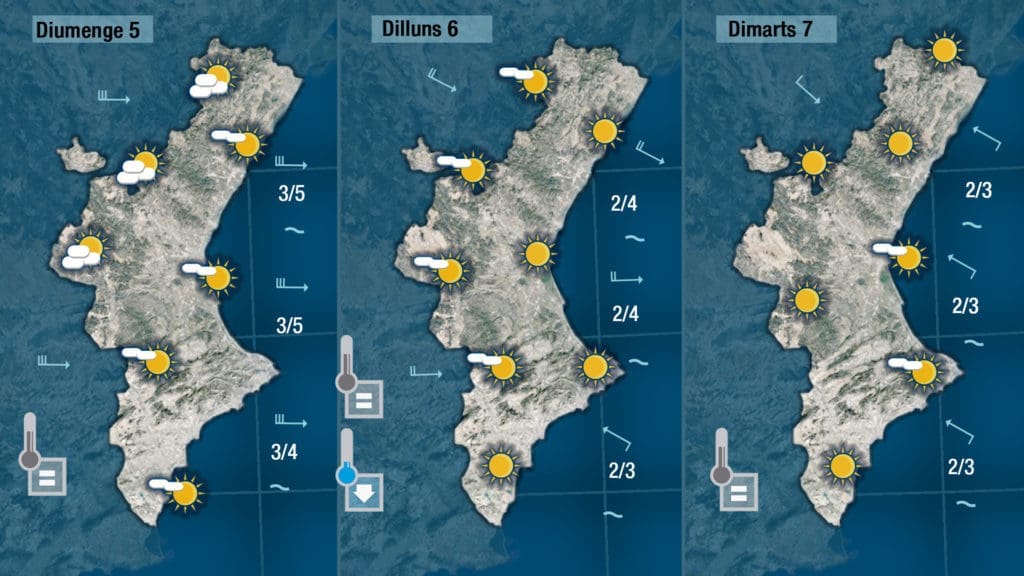 Porque todo indica que no será hasta domingo a última hora cuando notemos que el viento quiere empezar a perder bastante, y no será hasta el lunes cuando empiece a manifestarse el siroco a la mitad sur de la Comunitat para acabar imponiéndose martes por todas partes.