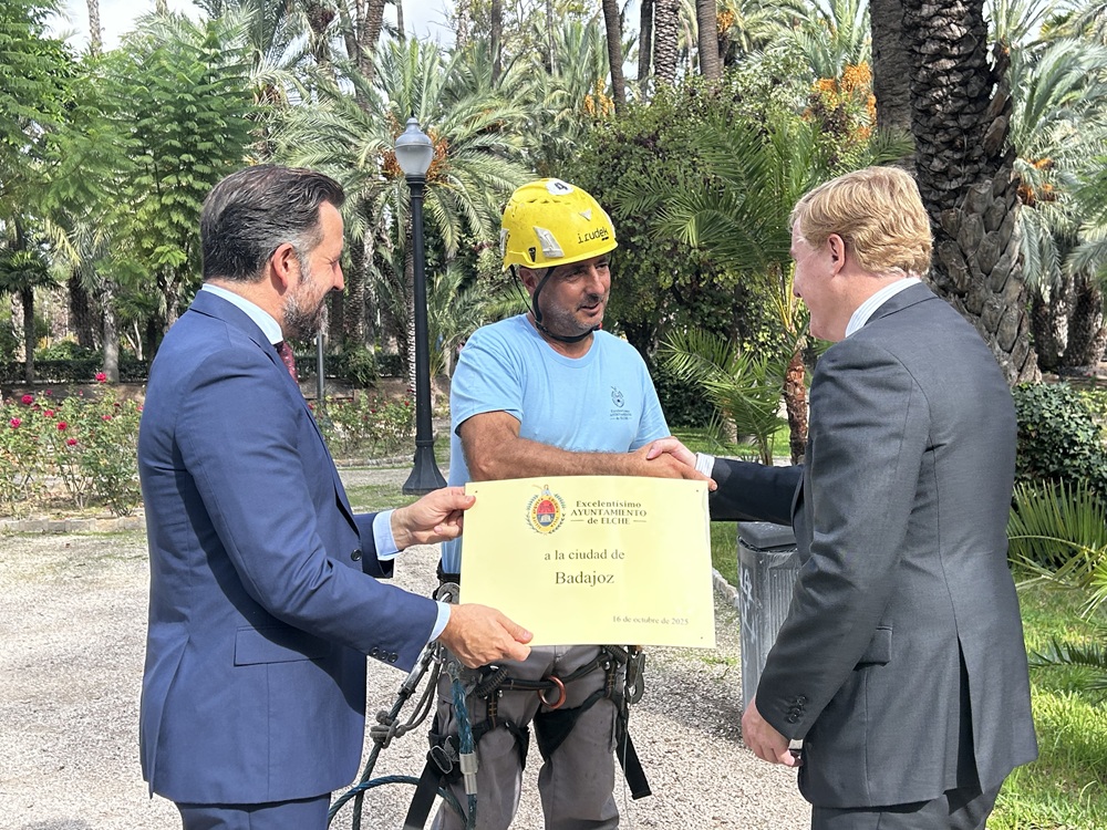 Pablo Ruz ha destacado a Elche como “una ciudad total y acogedora”, y de ahí el “honor de recibir a los hermanos de Extremadura y agradecimiento por esta visita”. Según el alcalde “el mejor homenaje que podemos hacer es con una palmera, un símbolo que comparten Elche y Badajoz, y que es recuerdo permanente y gratitud por esta visita y un vínculo ineludible”.