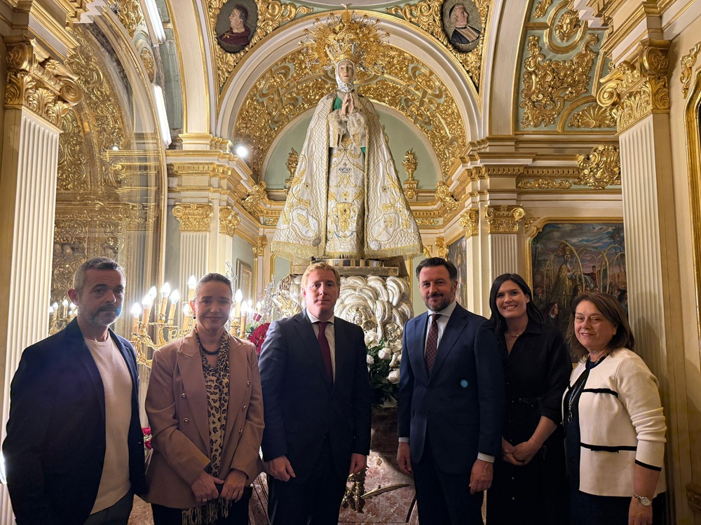 Pablo Ruz, junto al alcalde de Badajoz y miembros del gobierno municipal han visitado la basílica de Santa María, donde han subido al camarín de la Virgen de la Asunción para realizar una ofrenda de flores a la patrona de Elche.
