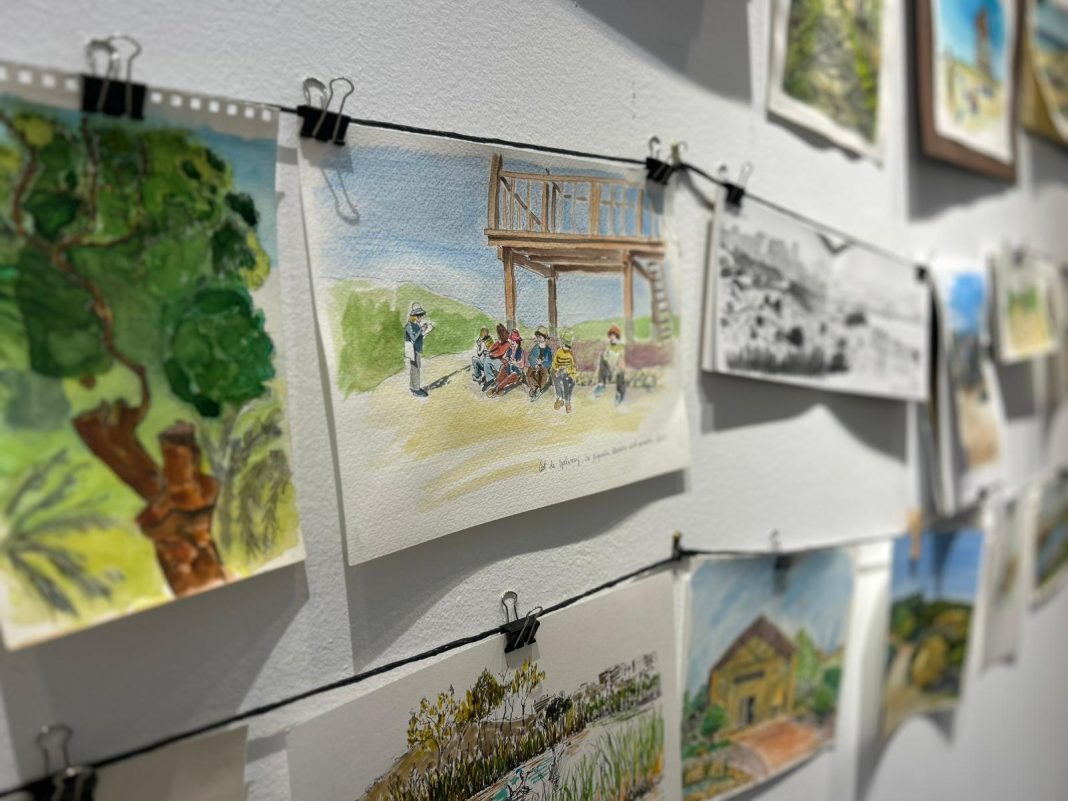 La exposición reúne los trabajos de 46 artistas de Cuadernos Viajeros, que durante varios meses realizaron sesiones de dibujo al aire libre en el paraje. A través de sus cuadernos, los autores reflejan la diversidad paisajística, la flora, la fauna y el patrimonio ambiental del Clot de Galvany.