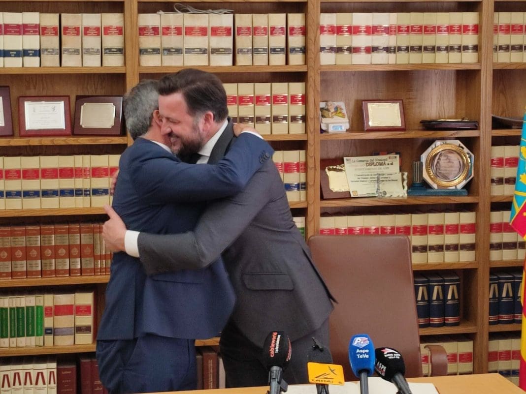 “El Río nos une y nos hermana” ha escrito Pablo Ruz en el Libro de Honor de la Villa. Posteriormente ambos alcaldes han visitado el Puente del Hierro y el Canal del Desvío. “La colaboración con el Ayuntamiento de Aspe ha sido muy buena en todo momento y eso ha permitido que estemos próximos al inicio de esta gran obra de rehabilitación patrimonial” ha comentado.