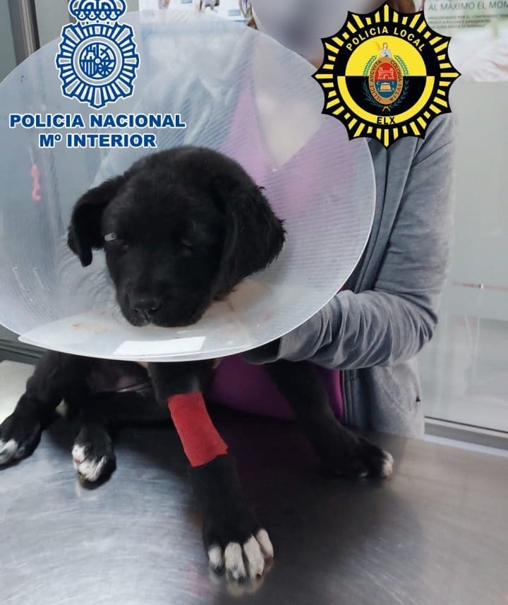 Agentes de la Policía Nacional en coordinación con agentes de la Policía Local de Elche, detuvieron a un varón, de 27 años, de nacionalidad española, al dueño de la perra por cometer presuntamente un delito de maltrato animal.