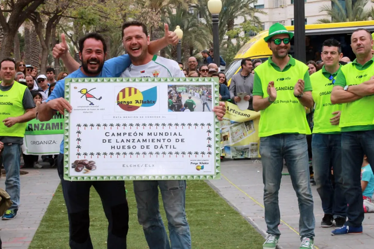 El Campeonato Mundial de Hueso de Dátil, organizado por la Asociación Cultural de Deportiva “Penya Altabix” comenzó a celebrarse en el año 2009 y tuvo como primer vencedor a Francisco Tomás Gómez que estableció un lanzamiento de 11 metros y 40 centímetros, en aquella ocasión la participación fue muy numerosa y contó con la presencia de “datileros” expertos que declararon haber estado practicando para la ocasión sorprendiendo a la propia organización que tuvo que ampliar el “datilódromo” ya que no habían previsto lanzamientos de tal magnitud.