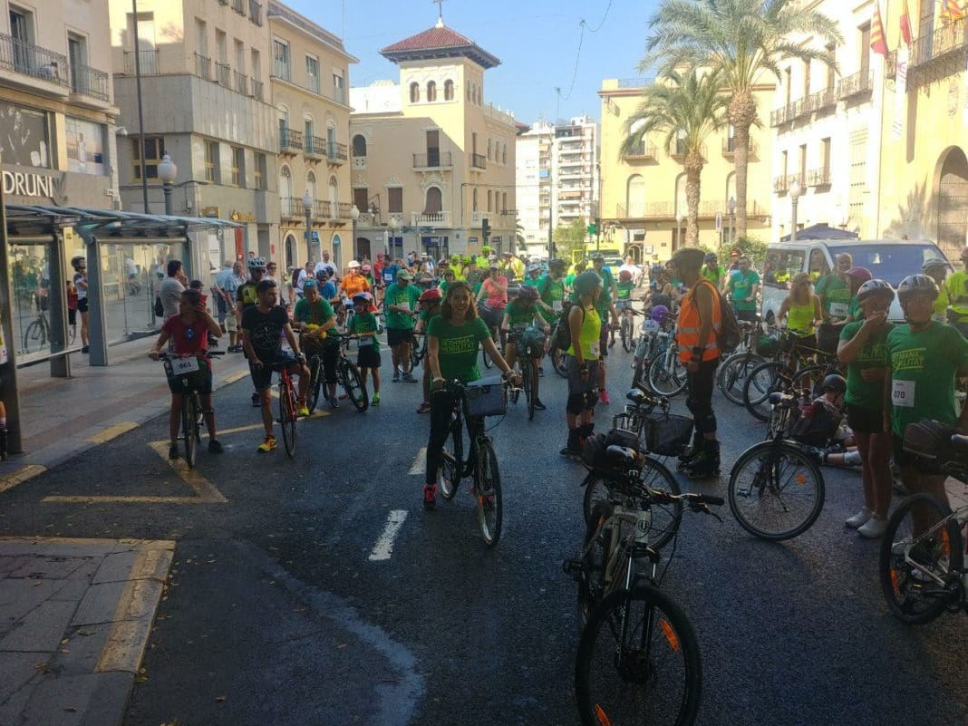 Más de 200 personas han participado en la Marcha Urbana Ciclista y Patinadora de Elche que se ha llevado a cabo desde la Plaça de Baix y en la que ha destacado la participación de la edil de Movilidad, Esther Díez.