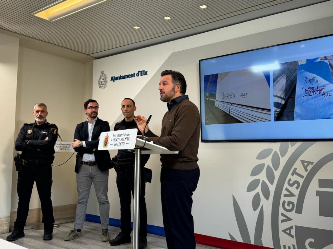 Así, el alcalde Pablo Ruz ha destacado la lucha desde el Ayuntamiento y la Policía Local de Elche por acabar con las pintadas por todo el municipio. “Estamos empeñados en extinguir estos actos vandálicos en los monumentos, muros o huertos históricos. Desde la administración vamos a tener mano dura tanto si son mayores o menores de edad”.
