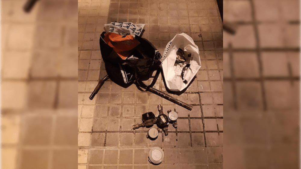Tras ser interceptado, los agentes comprobaron que portaba los contadores en una bolsa de plástico por lo que procedieron inmediatamente a inspeccionar el edificio del que se le vio salir. En el inmueble se observó la presencia de un chorro continuo de agua que había inundado el zaguán de la comunidad, al haberse retirado todos los contadores.