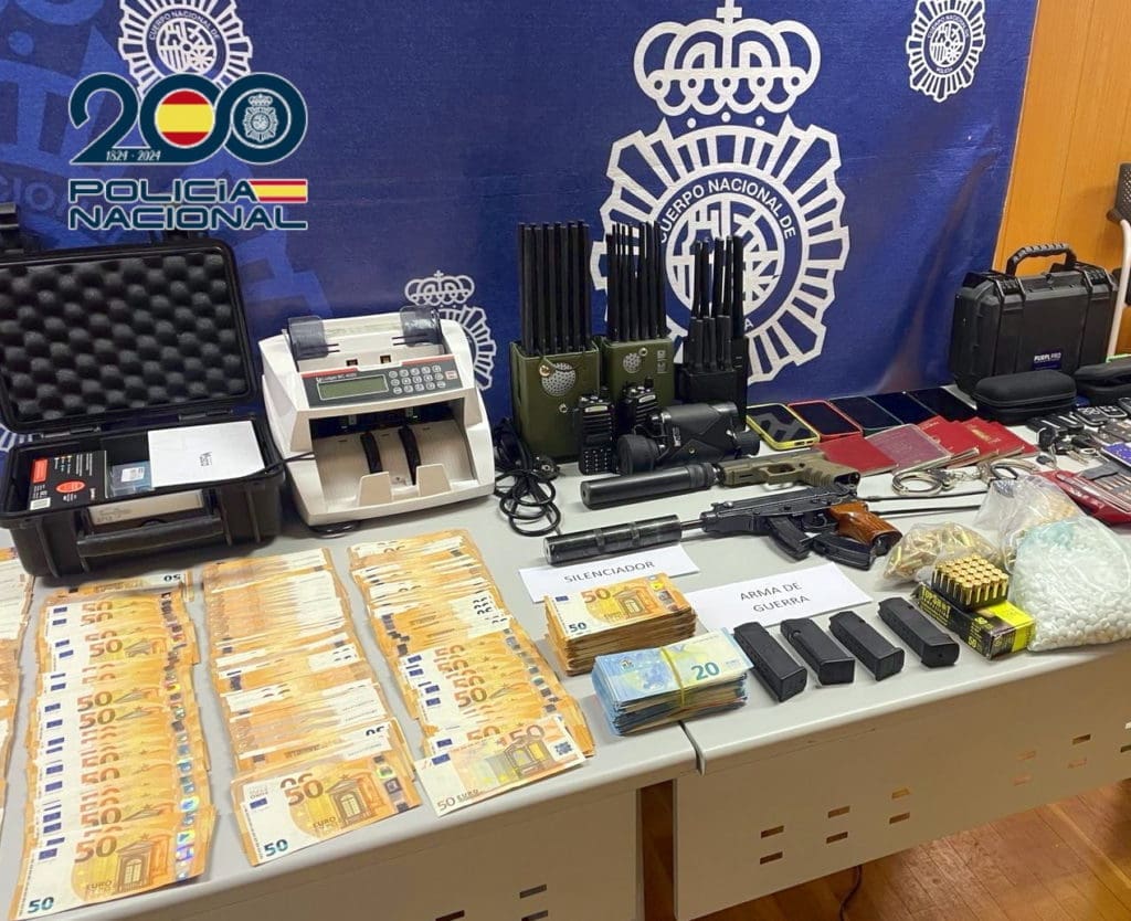 Dichos registros, culminaron con la detención de siete personas y con la incautación de 35 Kg de Marihuana, 2 Kg de Hachís, más de 100.000 euros en efectivo, un subfusil catalogado como arma de guerra, a la sazón de la misma marca y modelo que el que ya se había intervenido en el pasado mes de marzo y una pistola con multitud de munición, ambas armas con dispositivo silenciador para no llamar la atención del entorno en caso de ser utilizadas, que a la postre se trata de un dispositivo prohibido en España.
