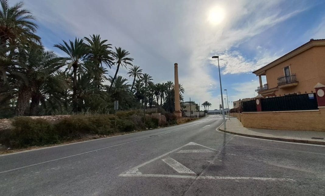 La actuación está incluida dentro del entorno de protección del Palmeral declarado Bien de Interés Cultural (BIC). El proyecto plantea la redefinición de la calle a un vial más amable con menos circulación y preferencia peatonal. Se recuperan las alineaciones de los huertos de palmeras con muros tradicionales, se elimina el carril en sentido sur y se dispone una plataforma única con dos bandas laterales pavimentadas con losas de piedra caliza. Además, se aprovecha la actuación para descubrir el tramo de Acequia Mayor que discurre por el lado este.