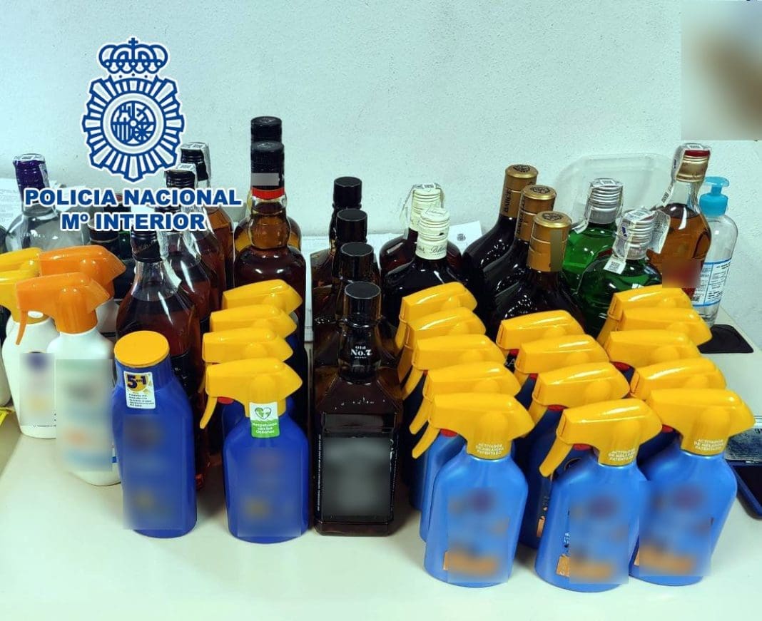 Dando continuidad al operativo y con todo el grupo criminal identificado, los agentes, durante la fase de explotación del operativo, interceptaron el vehículo donde iban a bordo todos los investigados, descubriendo que transportaban en el interior del maletero multitud de productos de ilícita procedencia, tales como; botellas de bebidas alcohólicas y botes de protección solar, con un alto valor en el mercado legal.