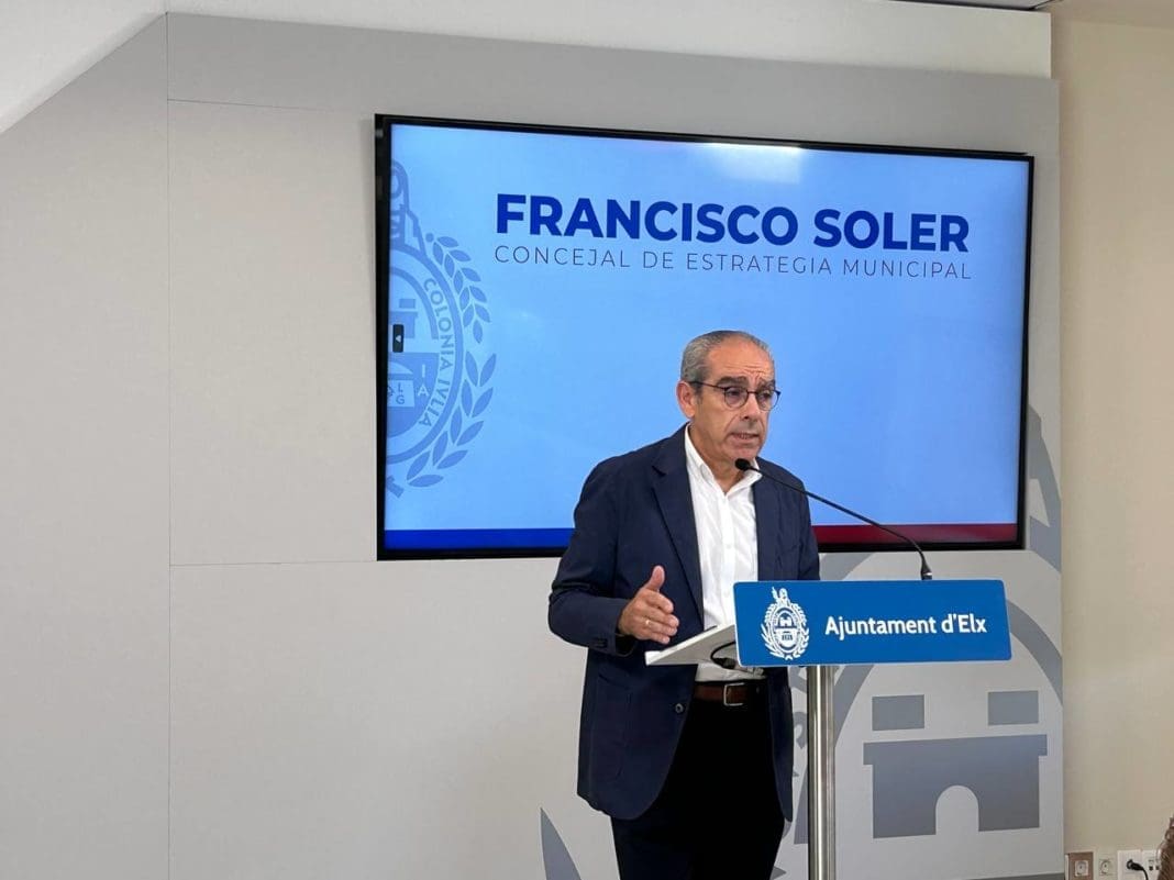 El edil de Estrategia Municipal, Francisco Soler, ha señalado que el Ayuntamiento de Elche dejará de ingresar cinco millones de euros de la Unión Europea por la pérdida de la subvención, al no poder ejecutar todos los proyectos presupuestados a fecha 31 de diciembre de 2023.