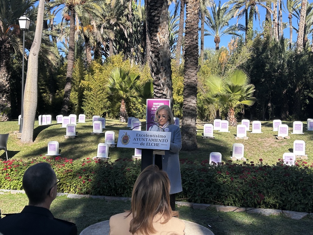 Este 25 de noviembre se conmemora el Día Internacional de la Eliminación de la Violencia contra la Mujer y por este motivo el Ayuntamiento de Elche ha celebrado un acto institucional en l’Hort del Xocolater en homenaje a las víctimas y demostración del rechazo de la sociedad a esta lacra.